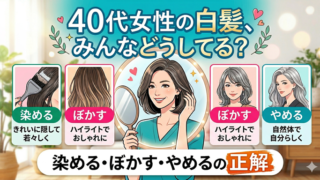 40代女性の白髪、みんなどうしてる?白髪染め・白髪ぼかし・染めない選択の違いをわかりやすく解説。自分に合った対処法が見つかる記事です。悩みをスッと軽くしたい方へ。