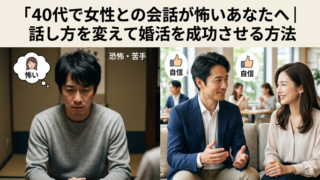 女性との会話が怖い40代へ。話せない原因と、すぐ実践できる会話のコツをわかりやすく解説。無料で始められる練習法から、最短で変わる方法まで紹介。会話に自信がない方でも大丈夫です。